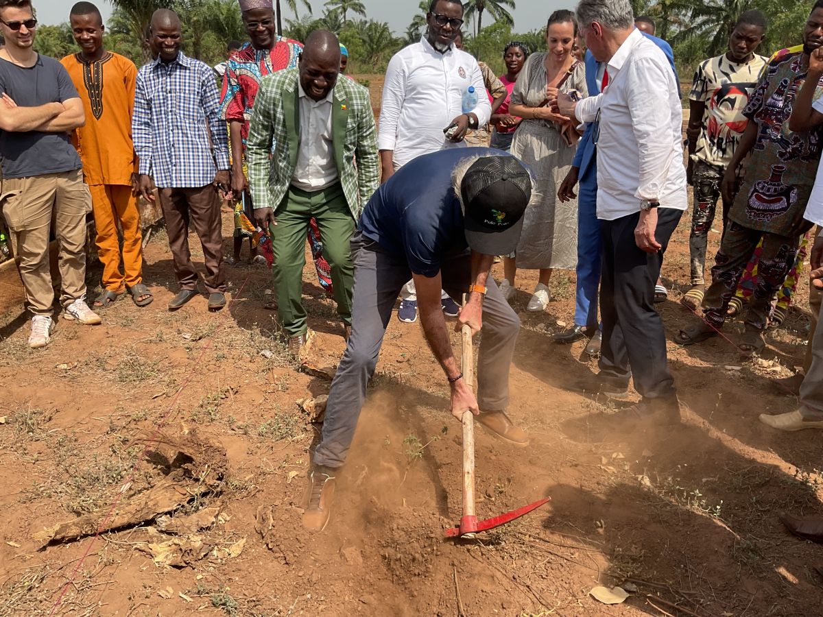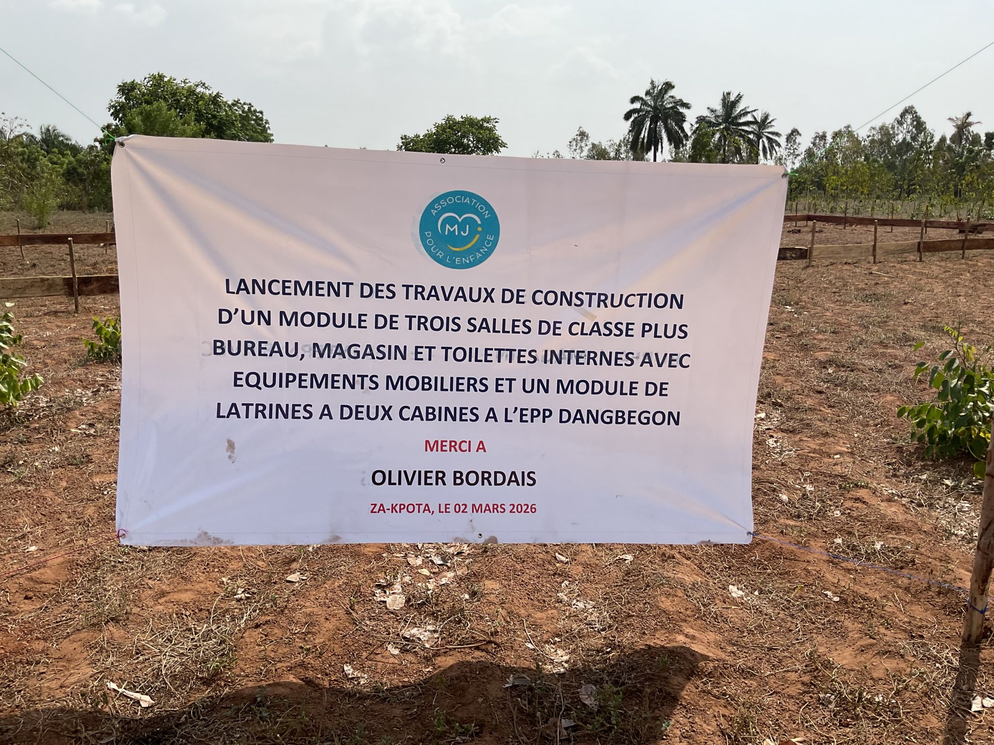 La construction de l’école de Dangbegon a été officiellement lancée le 02 mars 2026 avec le coup de pioche symbolique de M. Olivier BORDAIS.