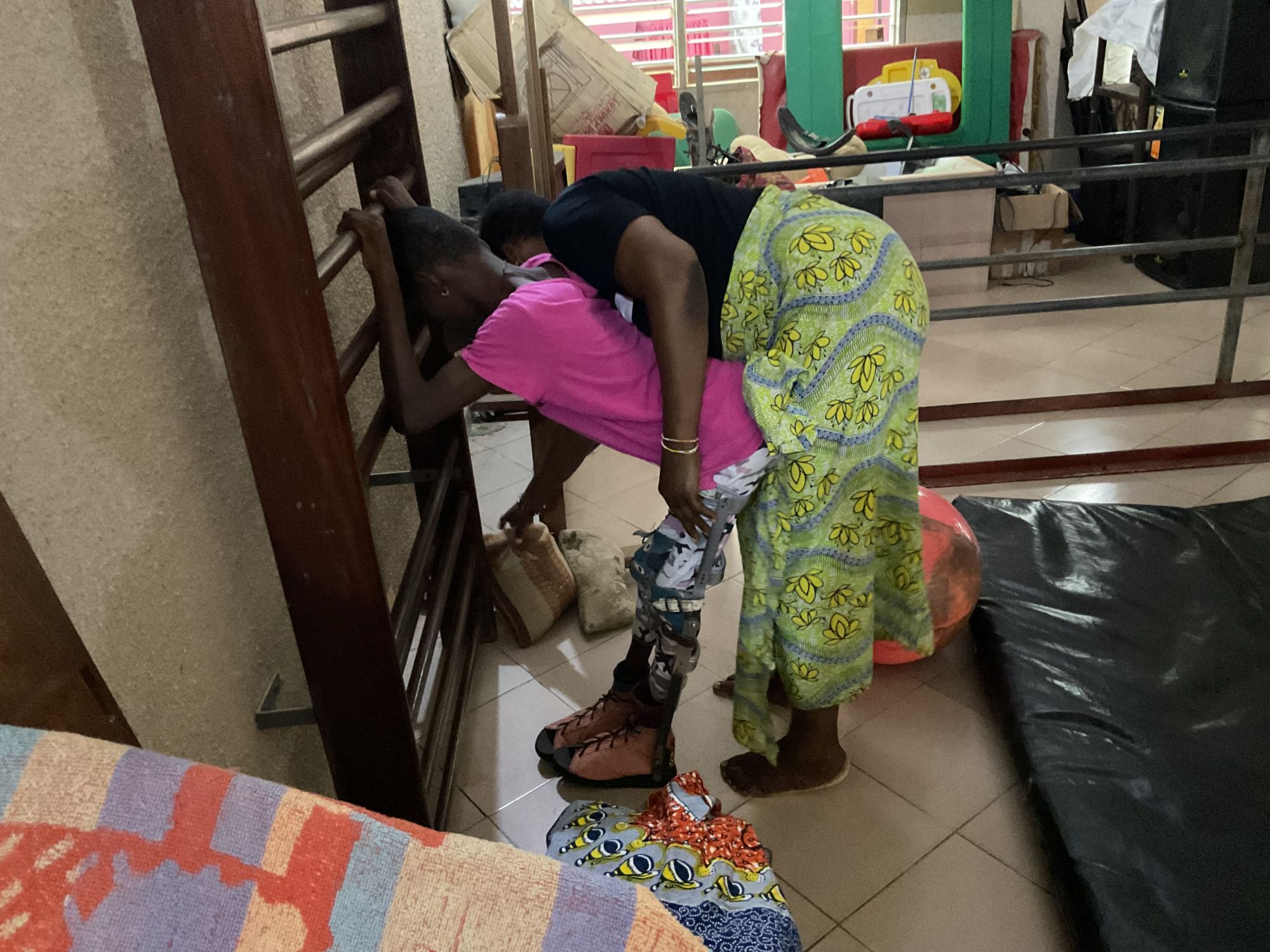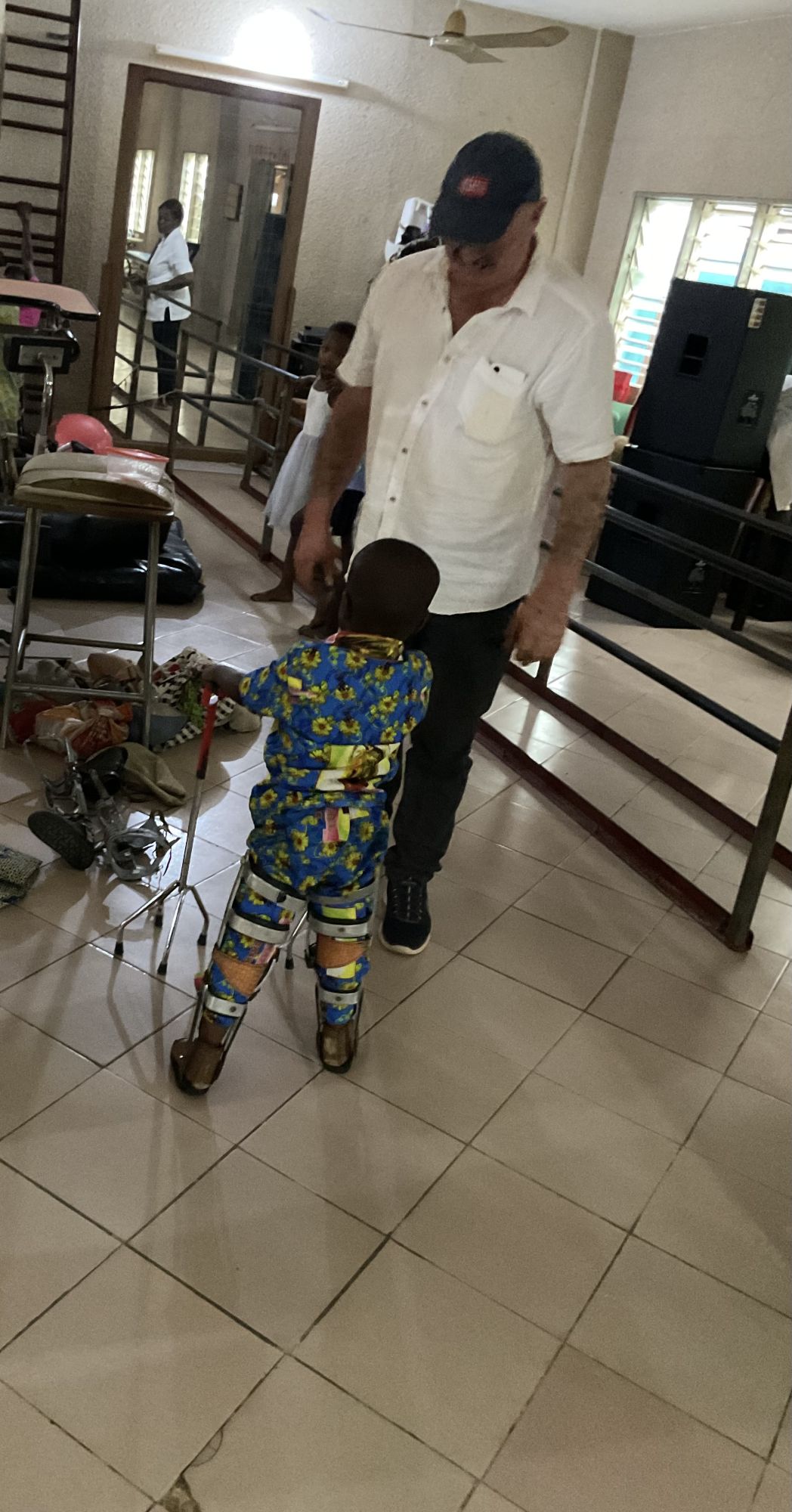 Nous y avons rencontré Monsieur Émile, le directeur, qui nous a chaleureusement reçus et nous a fait découvrir le travail remarquable réalisé au sein de l’établissement. Dans son atelier, il fabrique et adapte lui-même les appareillages orthopédiques pour chaque enfant : orthèses et plâtres destinés à corriger les déformations des membres.